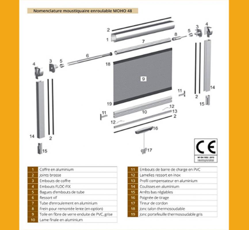 B- MOUSTIQUAIRE ENROULABLE, COFFRE DE 48 MM - S