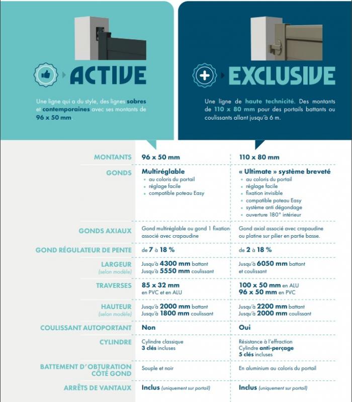 - S'adapte à toutes les configurations (pentes, ouverture 180°, ouverture extérieure...)