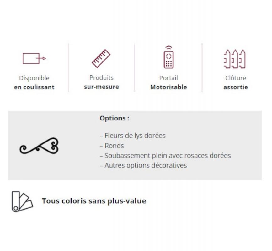 Chaque maison est unique, et le portail FUSHIA en aluminium gamme tradition vous permettra de mettre en valeur la personnalité de votre propriété. Avec sa qualité de fabrication exceptionnelle et son design intemporel, ce portail deviendra rapidement un élément essentiel de votre propriété pour les années à venir.