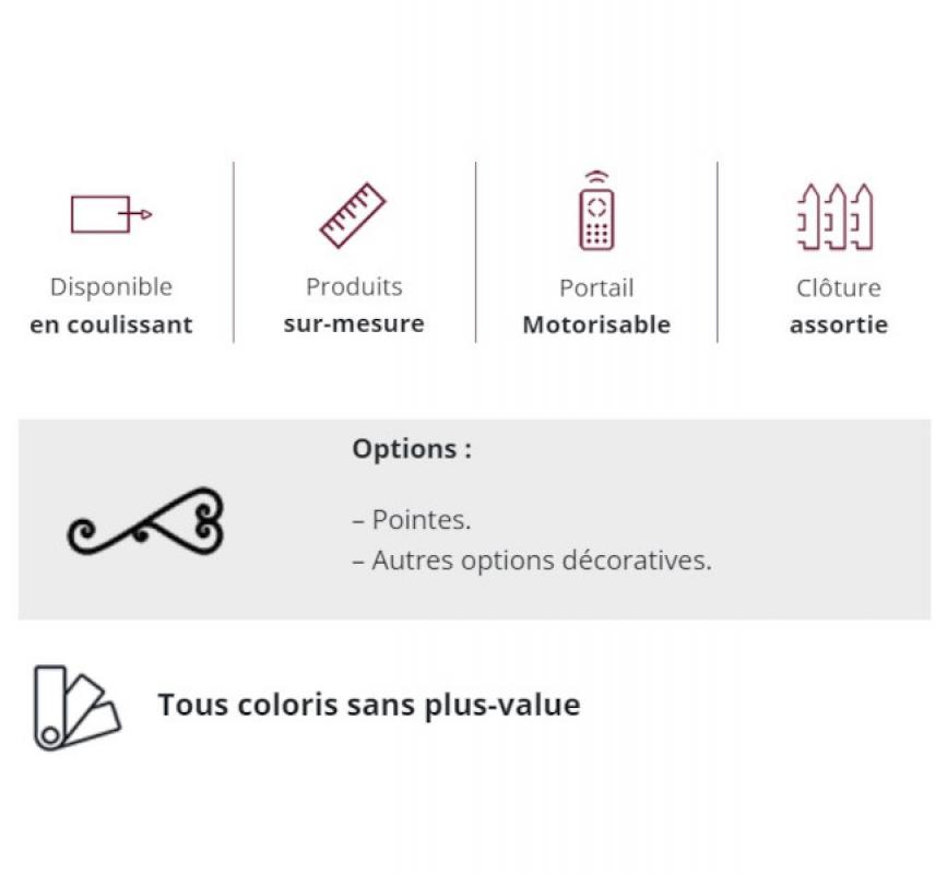 Le portail TOURNESOL est un portail ajouré au design droit qui ajoute une touche d'élégance à votre propriété. Fabriqué en aluminium de haute qualité, il est non seulement robuste et durable, mais il est également facile à entretenir. Son revêtement thermolaqué assure sa résistance aux intempéries et aux rayons UV, et assure une longue durée de vie.