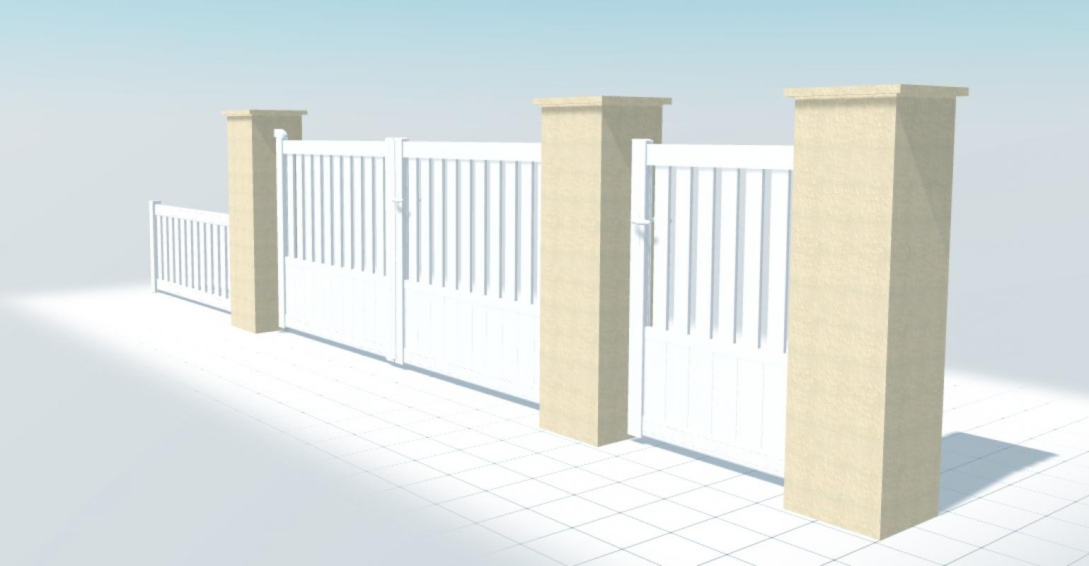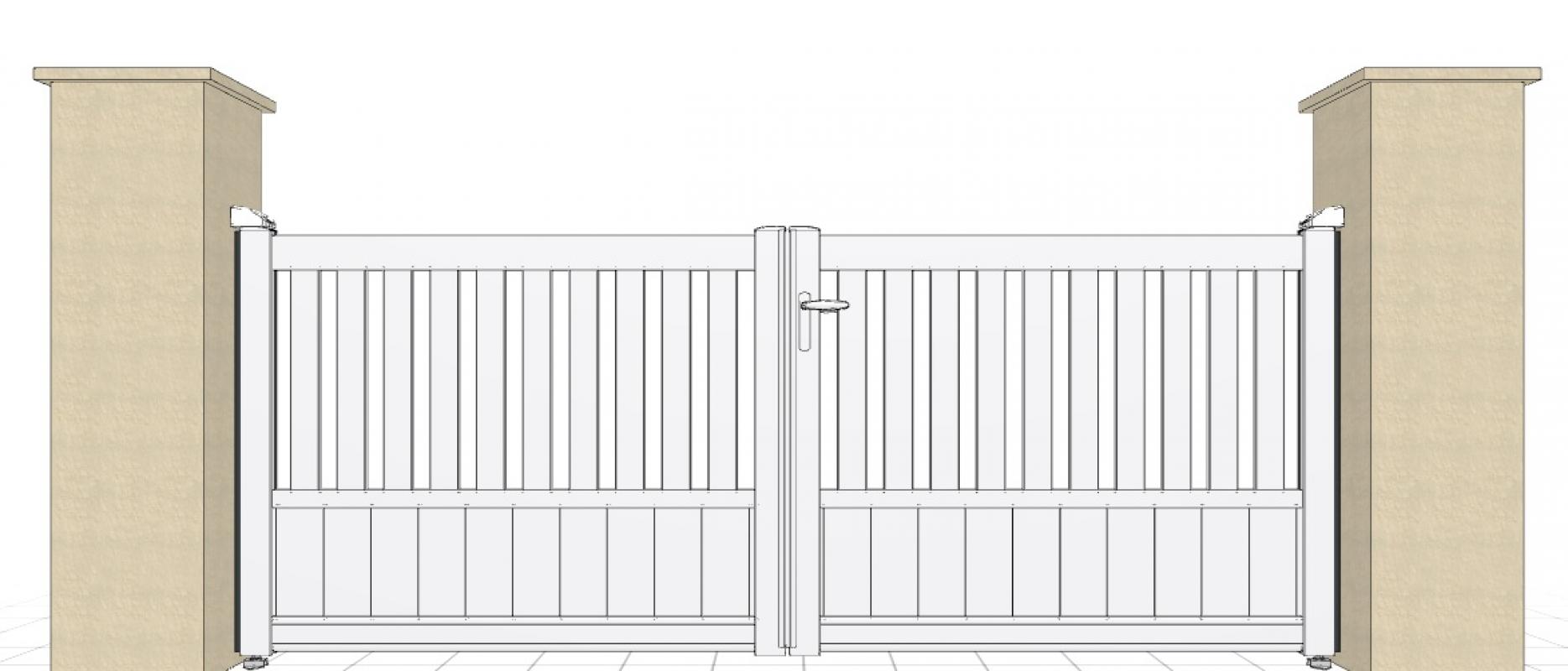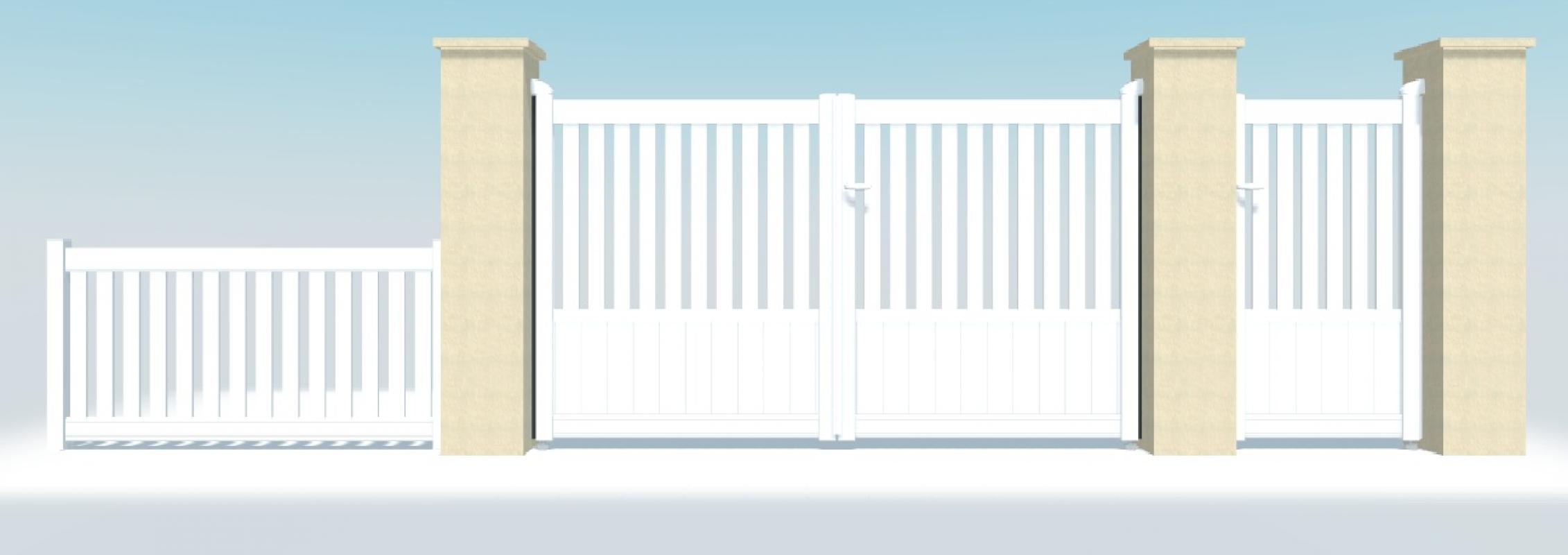 Avantages du portail PVC : - Barreaudage vertical 150x24