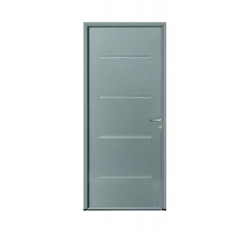 Cette porte d'entrée en acier est équipée d'un dormant en aluminium pour limiter l'entretien. L'ouvrant en acier est traité contre la corrosion et postformé avec 4 lignes horizontales de 48 mm, tant à l'intérieur qu'à l'extérieur, pour un design élégant et contemporain.
