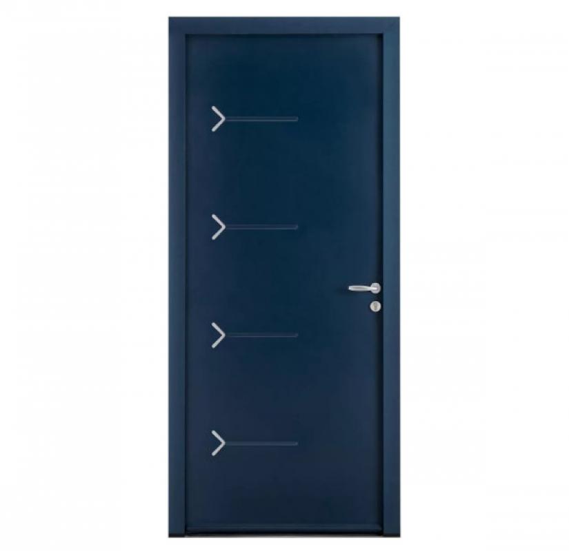 Cette porte d'entrée en acier est équipée d'un dormant en aluminium pour faciliter son entretien. L'ouvrant en acier est traité contre la corrosion et dispose de motifs identiques à l'extérieur et à l'intérieur.