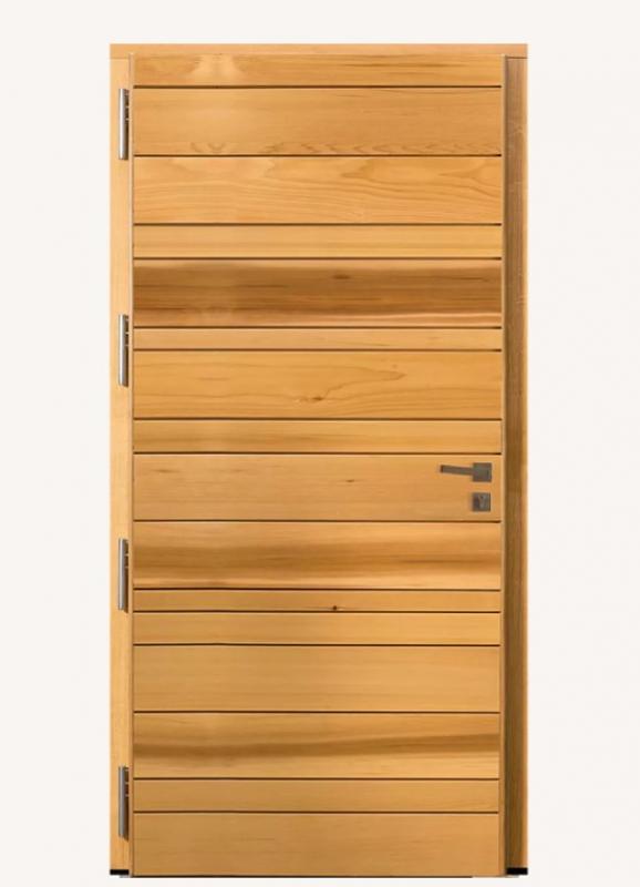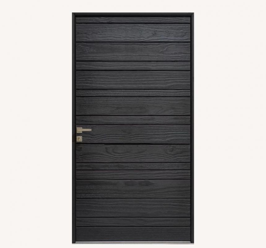 Porte d'entrée Nativ 23 Fusion Shou Sugi Ban, en bois Accoya®. Entretien simplifié, réduit à l'application d'une huile teintée à faible fréquence, pour redonner brillance et éclat à la finition. TENUE DE LA FINITION GARANTIE 10 ANS.
