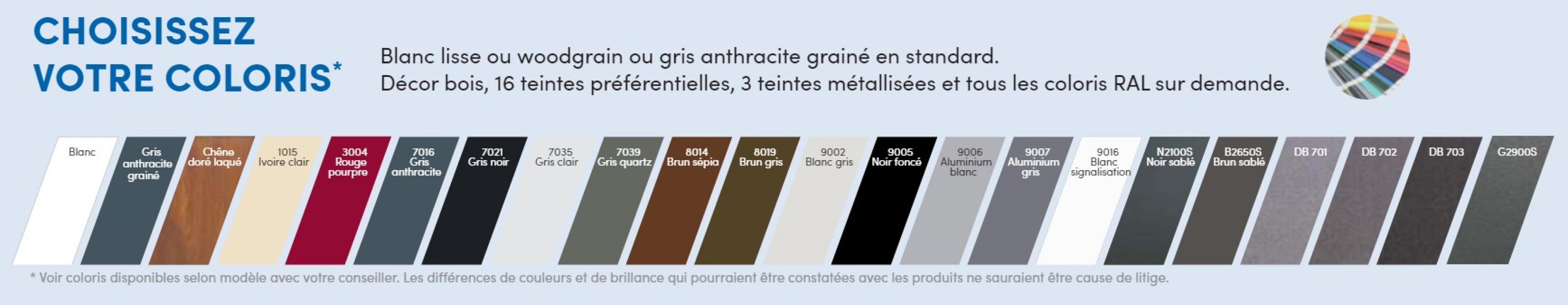 • Huisseries laquées au coloris extérieur des panneaux et charnières, embouts de panneaux, vis et supports de roulettes laqués blanc (en option).