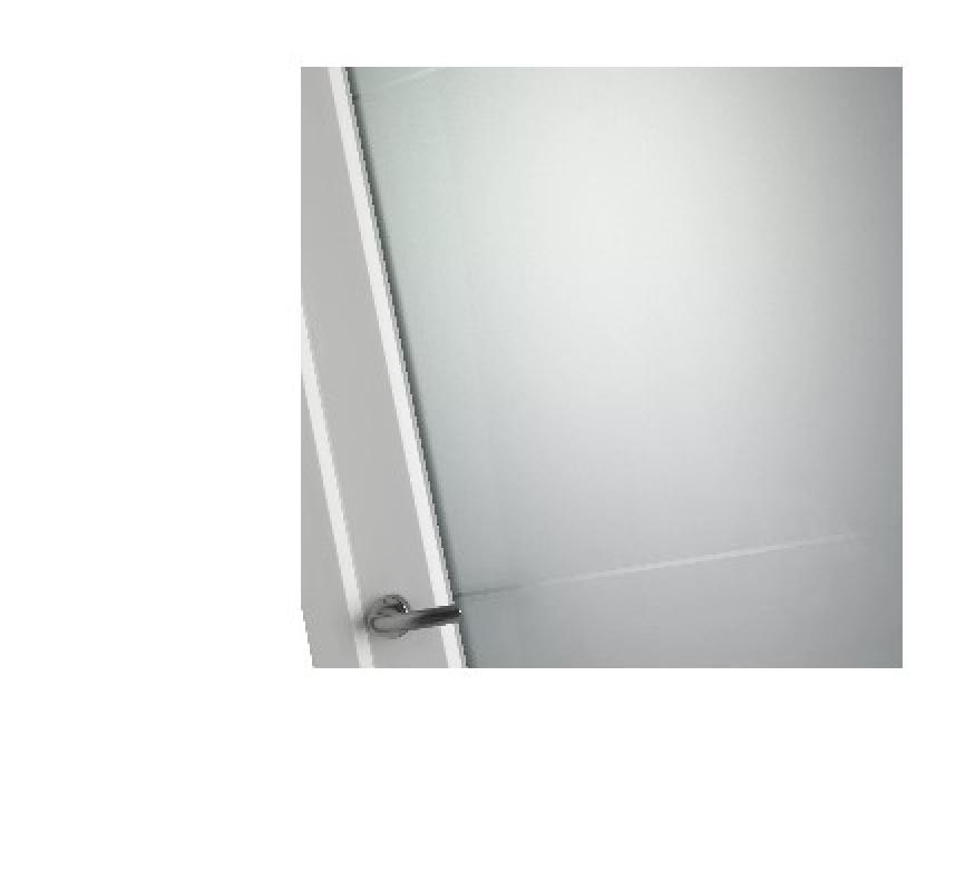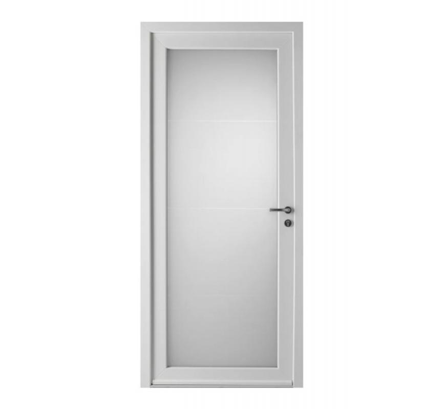 Une porte d'entrée au vitrage feuilleté sablé avec 3 lignes horizontales.
