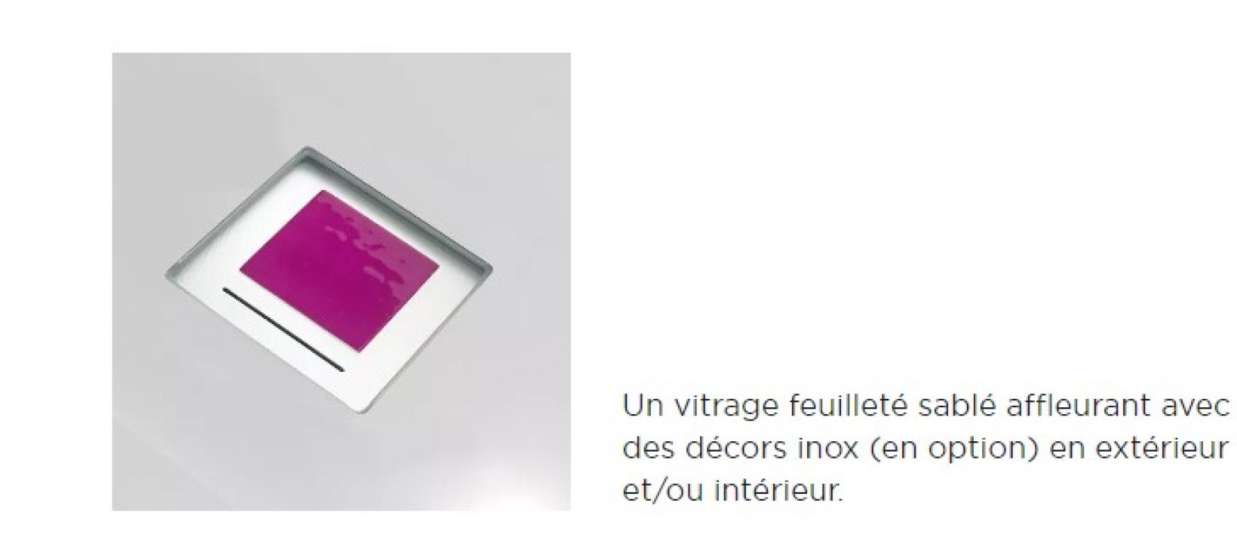 En option, il est possible d'ajouter des décors aspect inox sur la surface sablée du vitrage feuilleté. Ces décors peuvent être personnalisés pour répondre à vos goûts et à vos besoins en matière de design. Les motifs en inox donnent un aspect élégant et moderne à vos fenêtres et portes d'entrée, tout en ajoutant une touche de personnalité.