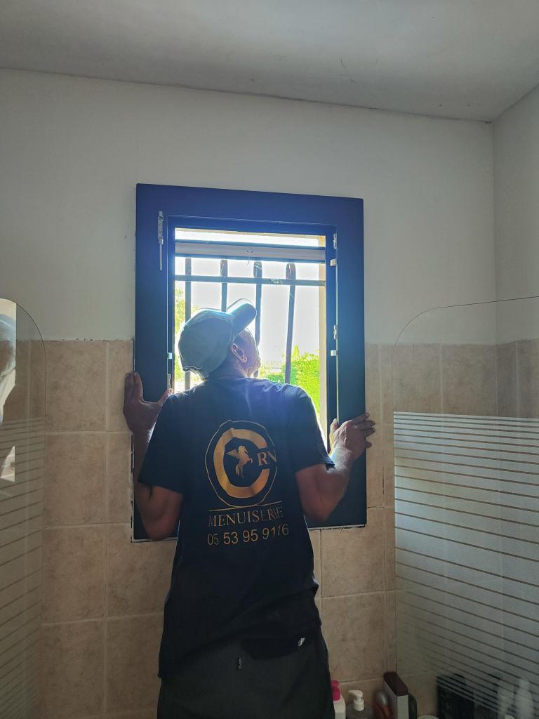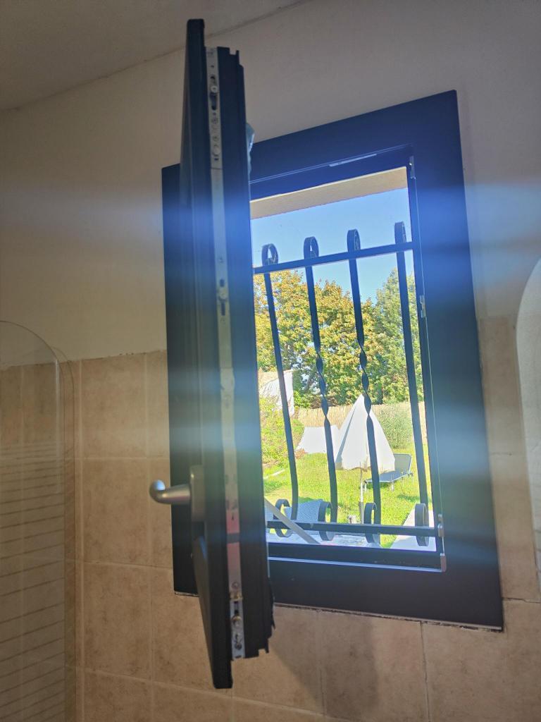 Fin septembre 2023 nous avons posé une fenêtre en aluminium dans une salle de bain sans toucher à la moustiquaire déjà en place.