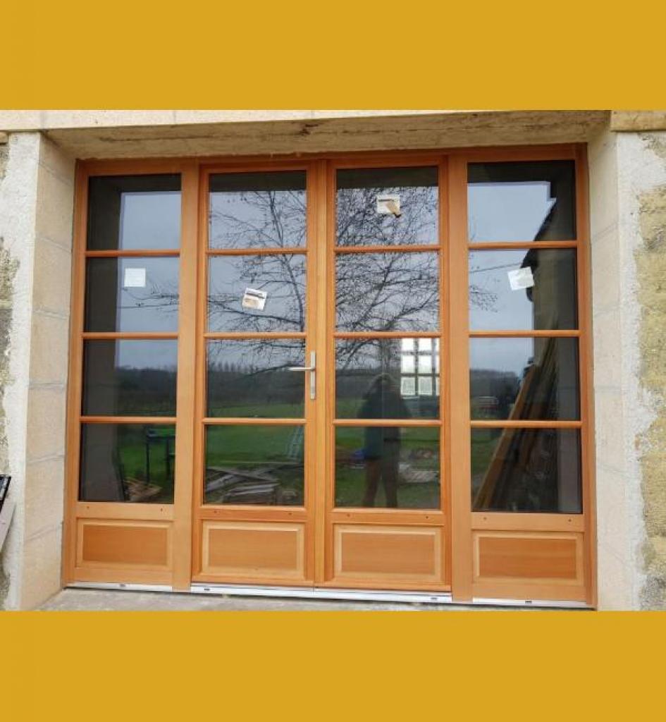 - Portes-fenêtres bois, pour un accès élégant et lumineux vers l’extérieur.